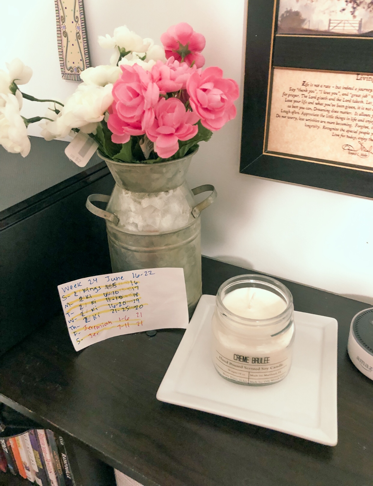 Flowers// Metal Vase// White Plate- Home Goods $1.99 & Candle was from Casual Friday Subscription (not sure what store it came from) đź’ś