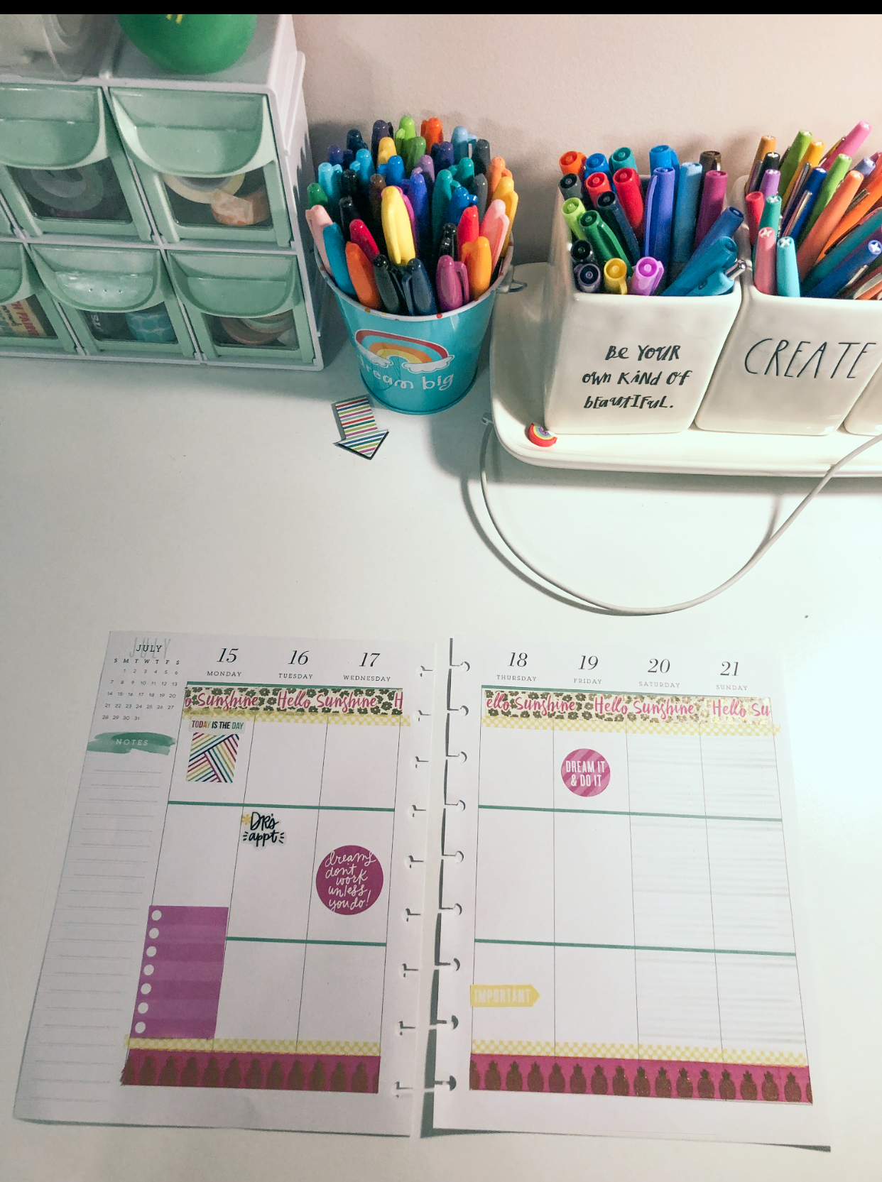 Happy Planner (Choose Your Own) // Similar Washi Tape // Seasonal Sticker Book Mini // Planner Basics Sticker Book // Fiskars Knife // Mint Storage Bins (Similar Build Your Own) // Rae Dunn Holders – TJ Maxx found in store // Rainbow Bin Similar Bins (Target Bullseye Playground last year)