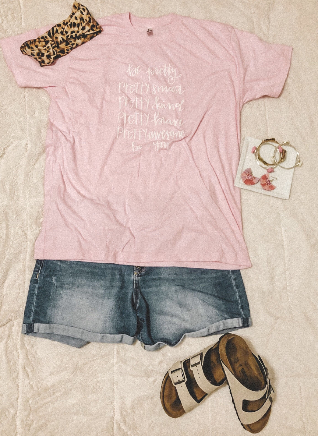 Similar Shirt (xl) // Headbands (same place that print is just sold out) // Earrings // Similar Bracelets // Similar Shorts* (12) // Birkenstocks* // Blanket*