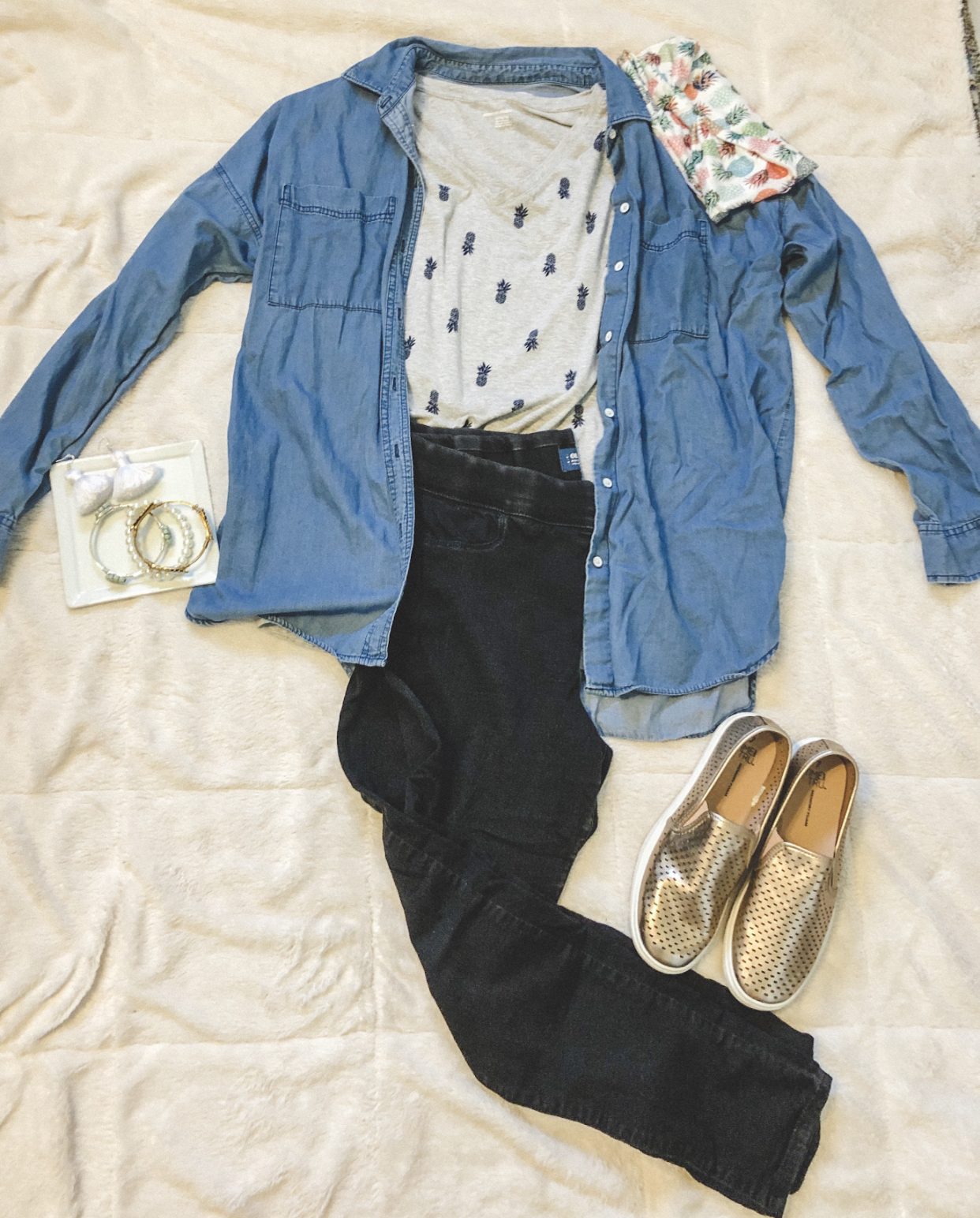 Shirt* (xl) // Jeggings* (12) // Similar Chambray Top* (xl) // Headband // Shoes*(7) // Similar Bracelets // Similar Earrings