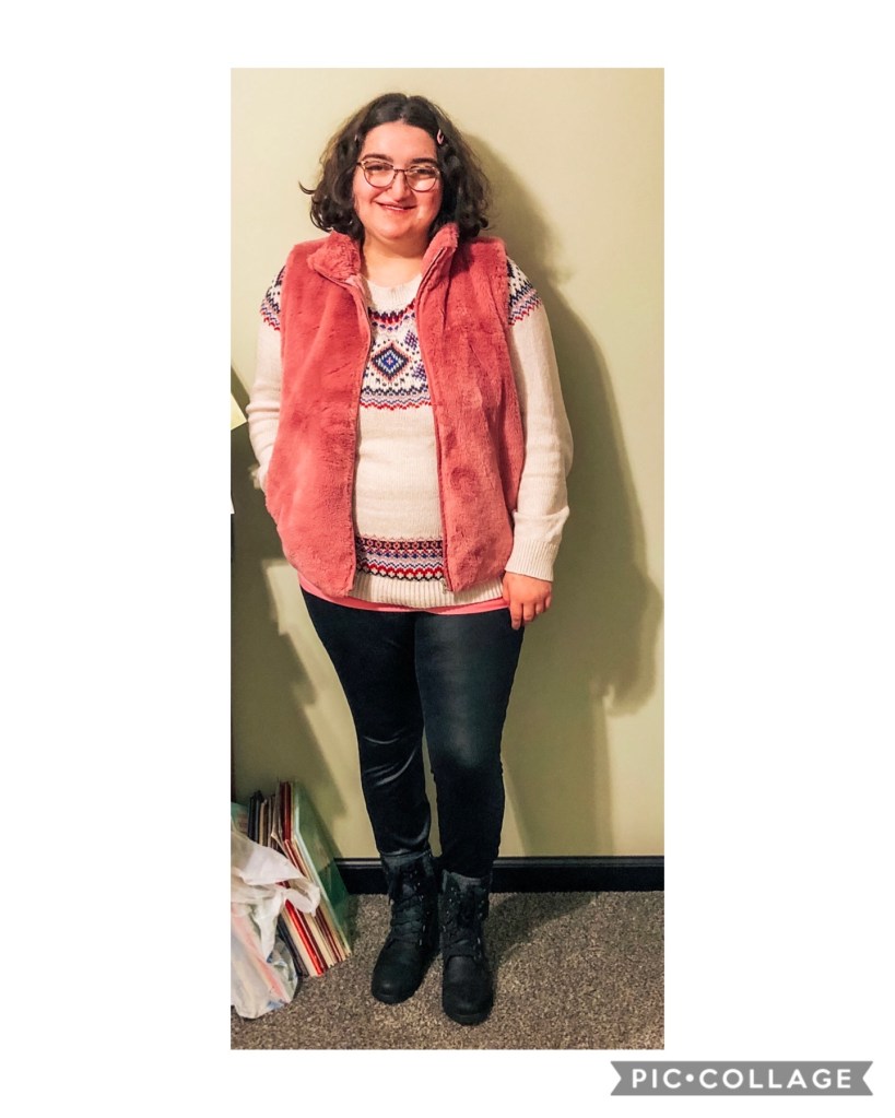 Similar Sweater* (xl) // Vest* ( I got mine from J Crew Factory but this is an identical vest I couldn’t find it on J Crew’s website) // Similar Boots* (7) // Faux Leather Leggings* (xxl) // Similar Snap Clips*