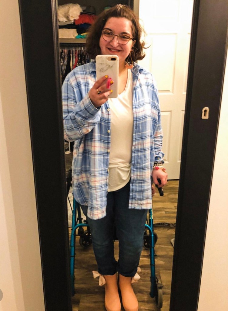 If it happens to rain or snow on Valentine’s Day you could pair some fun rain boots with your outfit. Think red rain boots with a different color vest on. This flannel only has a slight pink running through it which I pulled out in my boots. However I paired it with a basic white t. You could easily change the shoes to a black flat or something along those lines.