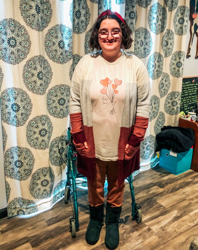 Similar Shirt* (xl) // Similar Jeggings* (xl) // Ugg* (8) // Similar Cardigan* (xl) // Headband // Earrings