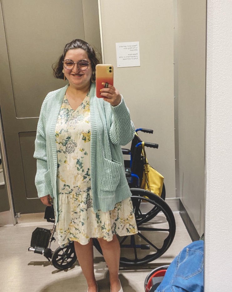 I’m thinking about this being my Easter dress. I love all the spring colors in it! I snagged this cardigan on clearance for $13 and it is so soft and cozy! I would pair this with white or yellow shoes. This dress is so comfortable. The material is silky almost which feels amazing in the spring and summer.