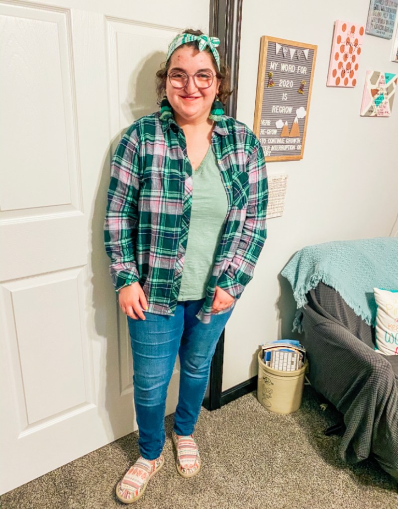 Shirt* (xl) // Jeggings* (12) // Similar Shoes* // Similar Flannel Shirt* (xl) // Similar Headband // Similar Earrings //