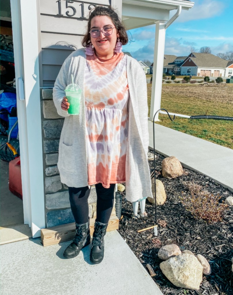 Similar Dress* (large) // Leggings* (large) // Similar Shoes* // Similar Cardigan* (xl) // Similar Earrings
