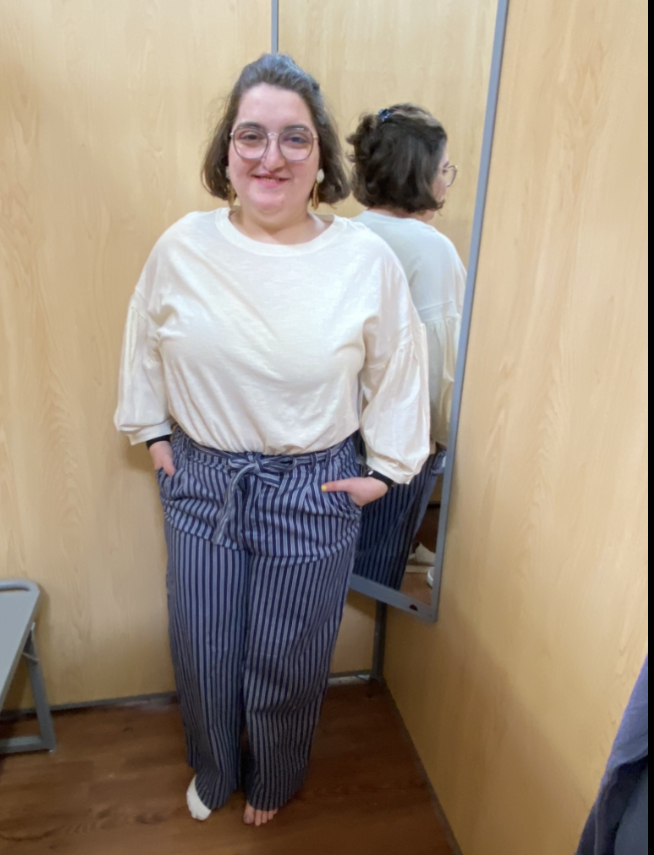 This shirt was really soft and cozy and I love the balloon sleeve details on it. The pants I wasn’t a huge fan of. I sized up to a 14 and it fit snug a little bit. They were comfy and they are cute to style! I am 5’2.