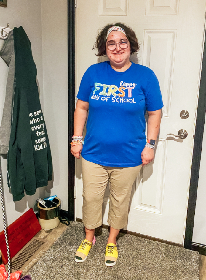 Similar Shirt (xl #ad) // Similar Pants (large) // Shoes (then I painted them) // Similar Bracelets // Earrings (use code Abby for 20% off) // Mask (#ad) // Headband