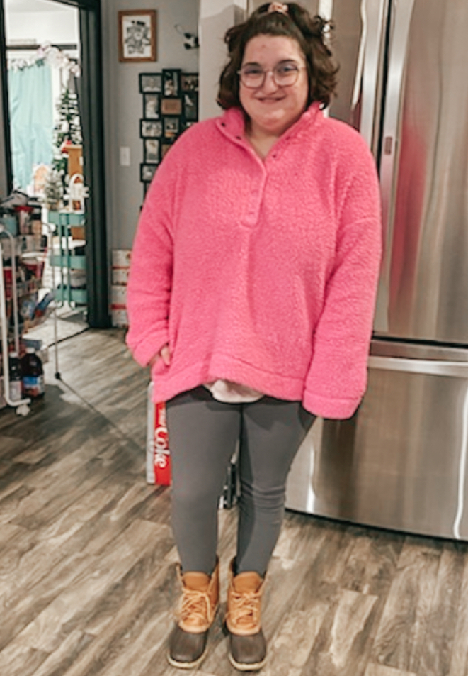 Sherpa (large) // Similar Shirt (xl) // Boots (7) // LifeSky Yoga Pants with Pockets for Women, High Waisted Tummy Control Leggings 4 Way Stretch Workout Pants, L (large) // 6Pcs Premium Satin Elastic Hair Bands Scrunchy Ponytail holder Hair Scrunchies Hair Ties Ropes Scrunchies for Women or Girls Hair Accessories